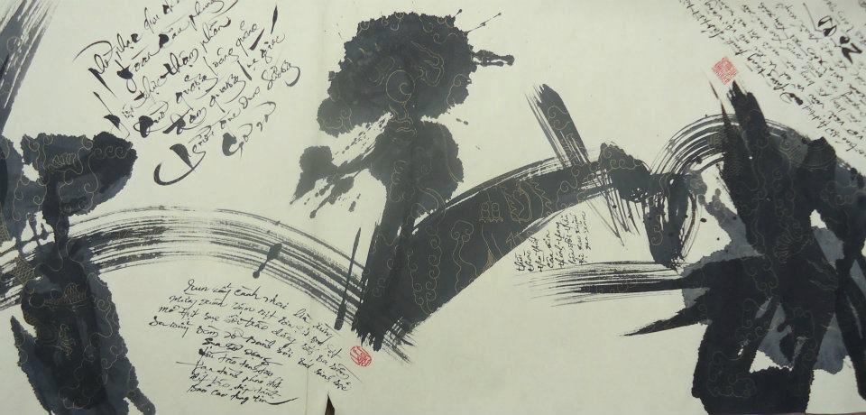 Được lựa chọn in vào trong tiểu thuyết "Gọi con người", những bức tranh chữ như những "cánh cửa" dẫn người đọc vào thế giới của tiểu thuyết.